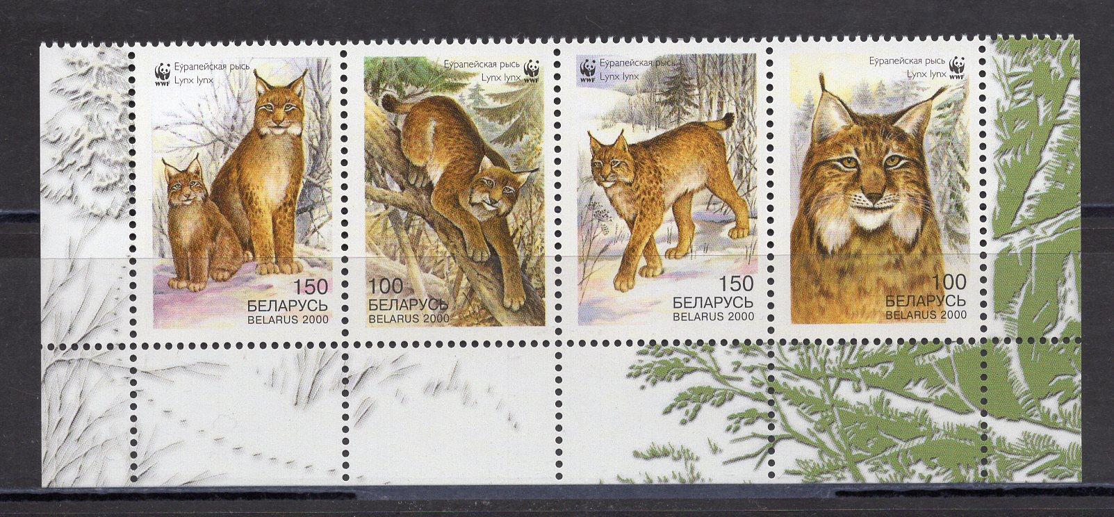 Почтовые марки. Беларусь. 2000г. WWF. Рысь. №373-376.