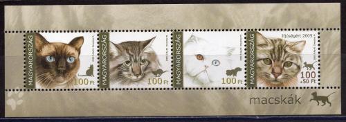 Почтовые марки. Венгрия. 2005г. Кошки. Блок №295.