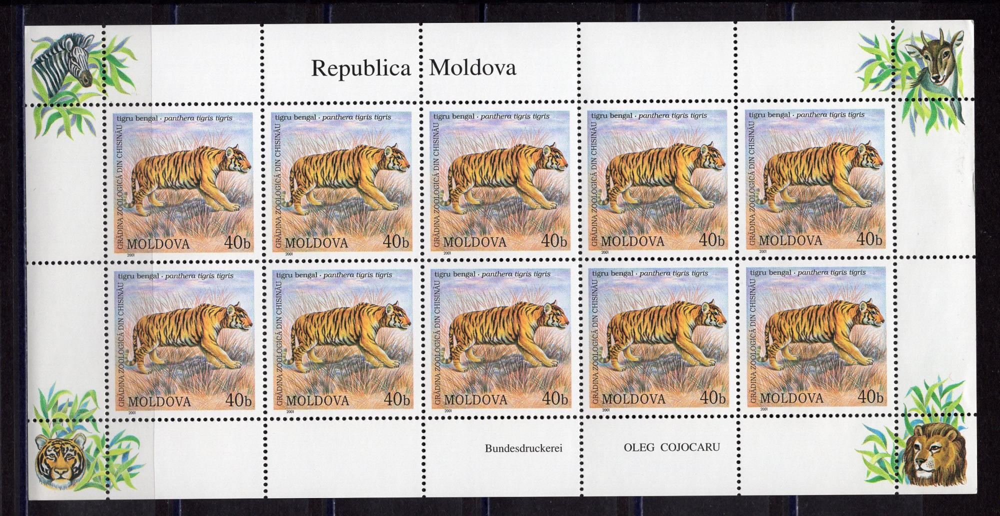 Почтовые марки. Молдова. 2001г. Тигры. №397. МЛ.