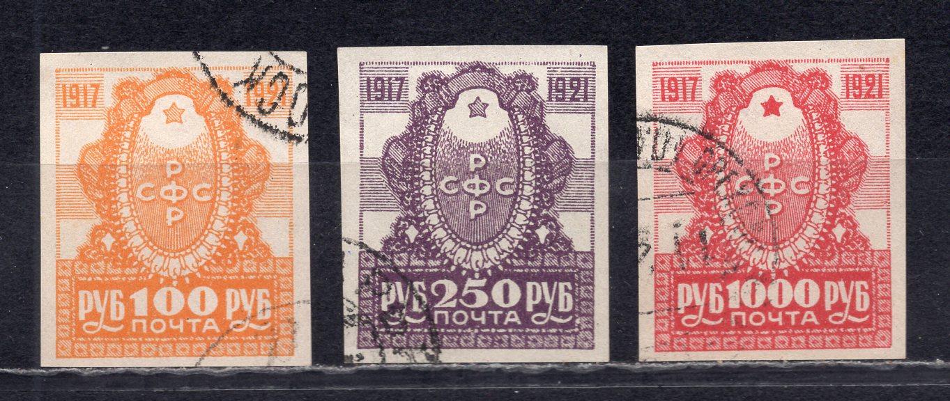 Почтовые марки. РСФСР, 1921 г. Стандарт. №25-27. Безз.