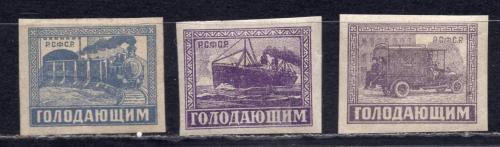 Почтовые марки. РСФСР, 1922 г. Голодающим. №50, 51, 52. (Сост.: чист, чист. с накл.)