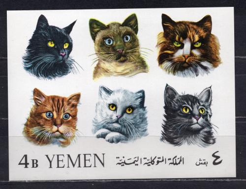 Почтовые марки. Йемен, 1965 г. Кошки. Бл. 22. (18,0 е)