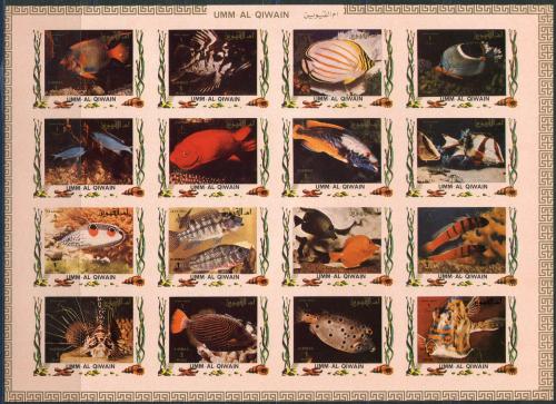 Почтовые марки. Умм-эль-Кайвайн.1972г. Рыбы (1 вып.) 16м.МЛ. №1306В-1321В. Беззубц.