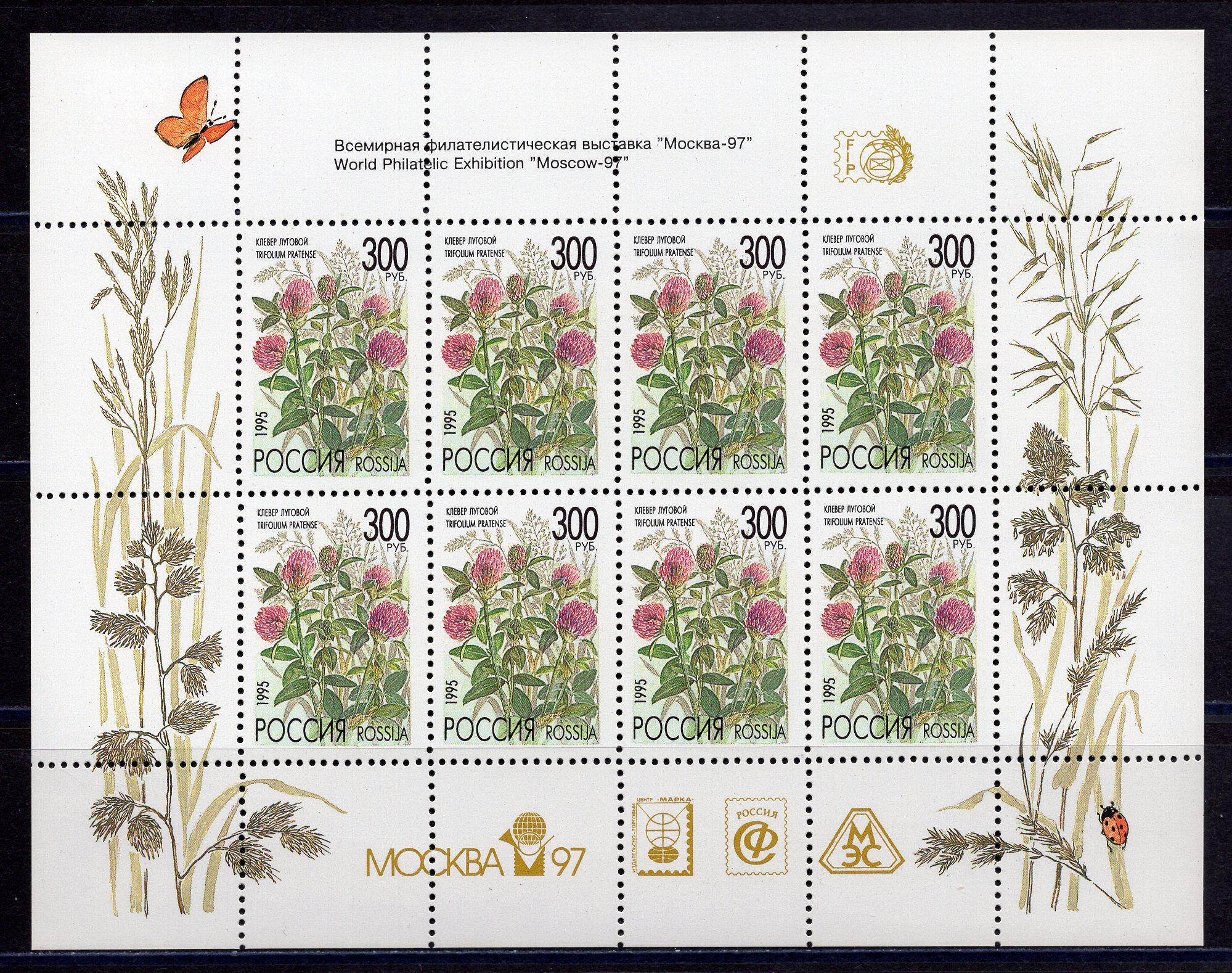 Почтовые марки. Россия. 1995 г. Полевые цветы России. №219А. С надпечаткой. Всемирная филателистическая выставка "Москва-97". МЛ