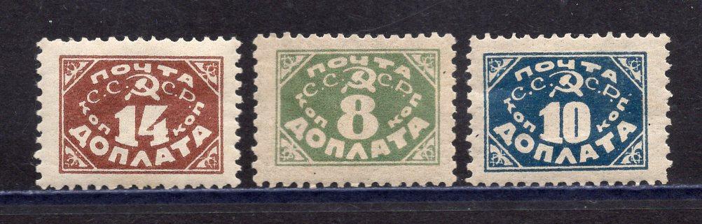 Доплатные марки. СССР. 1925г. Доплата. Д 15 Р12 лито БВЗ, тонкая бумага. Д 16АБ Р12. Д 14 лито БВЗ.