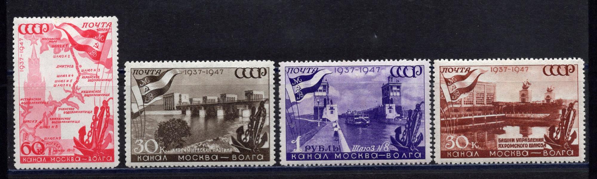 Почтовые марки. СССР. 1947г. Канал Москва-Волга. №1153, №1154, №1157, №1158. TипI. (без 1155-1156)