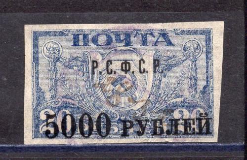 Почтовые марки. РСФСР. 1921г. Стандарт. Надпечатка. №17Аа. Тонкая бумага.
