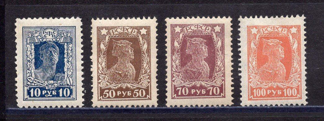 Почтовые марки. РСФСР. 1922-1923г. Стандарт. №77Б(13½), №78(14:14½), №79(14:14½), №80. Тонкая бумага.