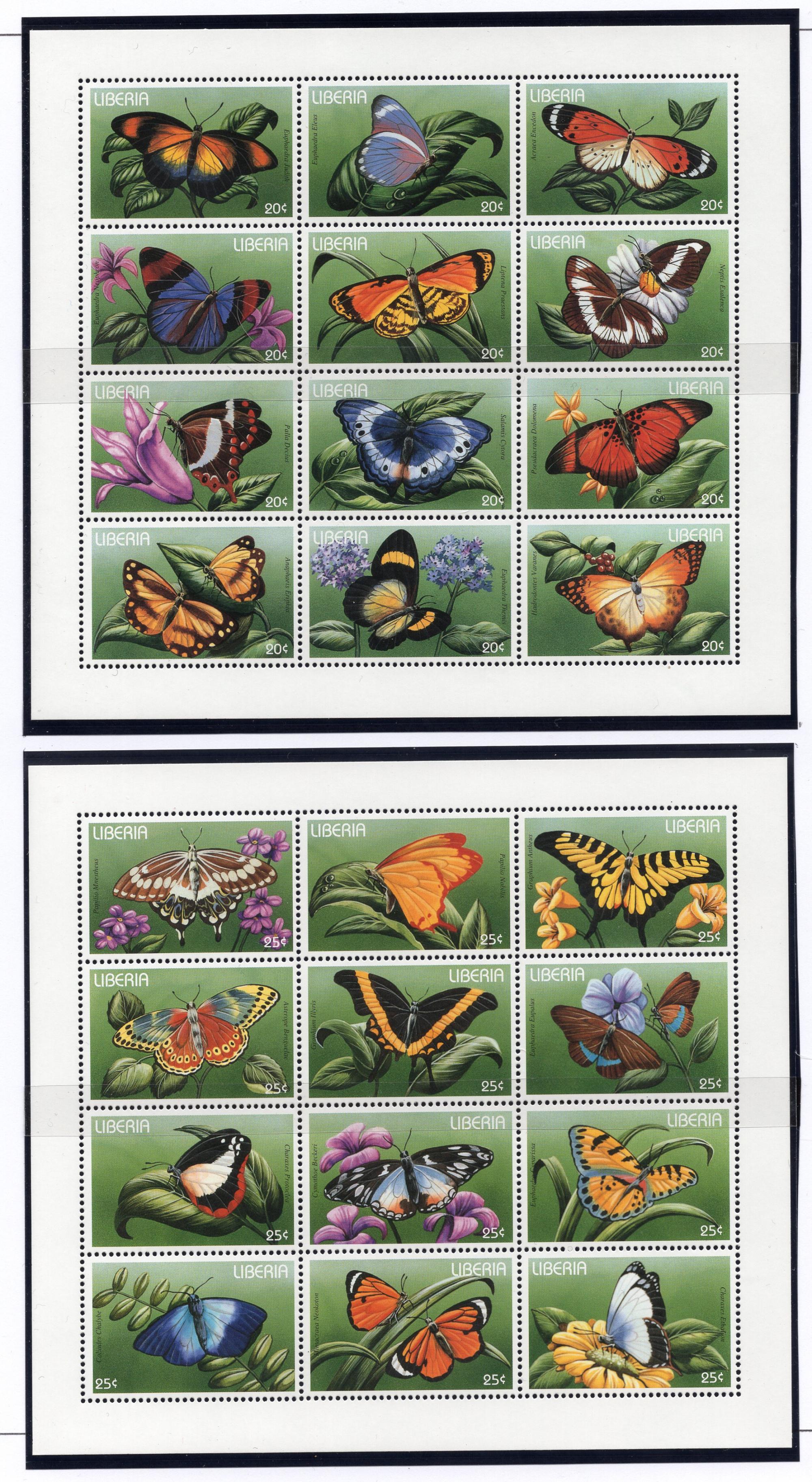 Почтовые марки. Либерия, 1996 г. Бабочки. №1707 - 1730 МЛ, Бл. 150. (Mi: 22,0 е)