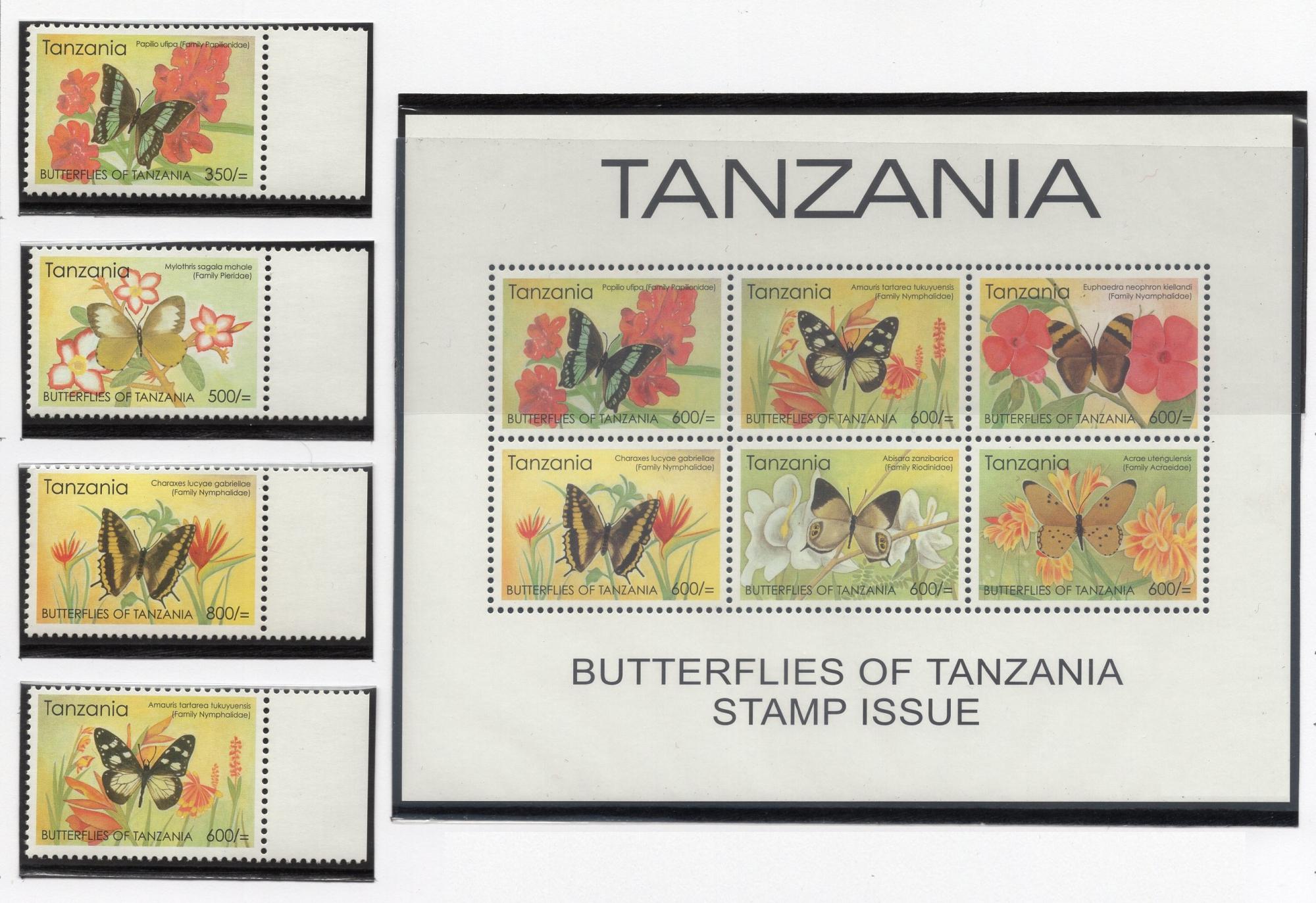 Почтовые марки. Танзания, 2005 г. Бабочки. №4321 - 4329. Бл.585 (Mi 14.30 e)
