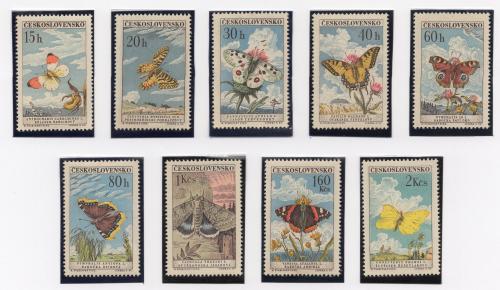 Почтовые марки. Чехословакия, 1961 г. Бабочки. №1301-1309. (25,0 е)