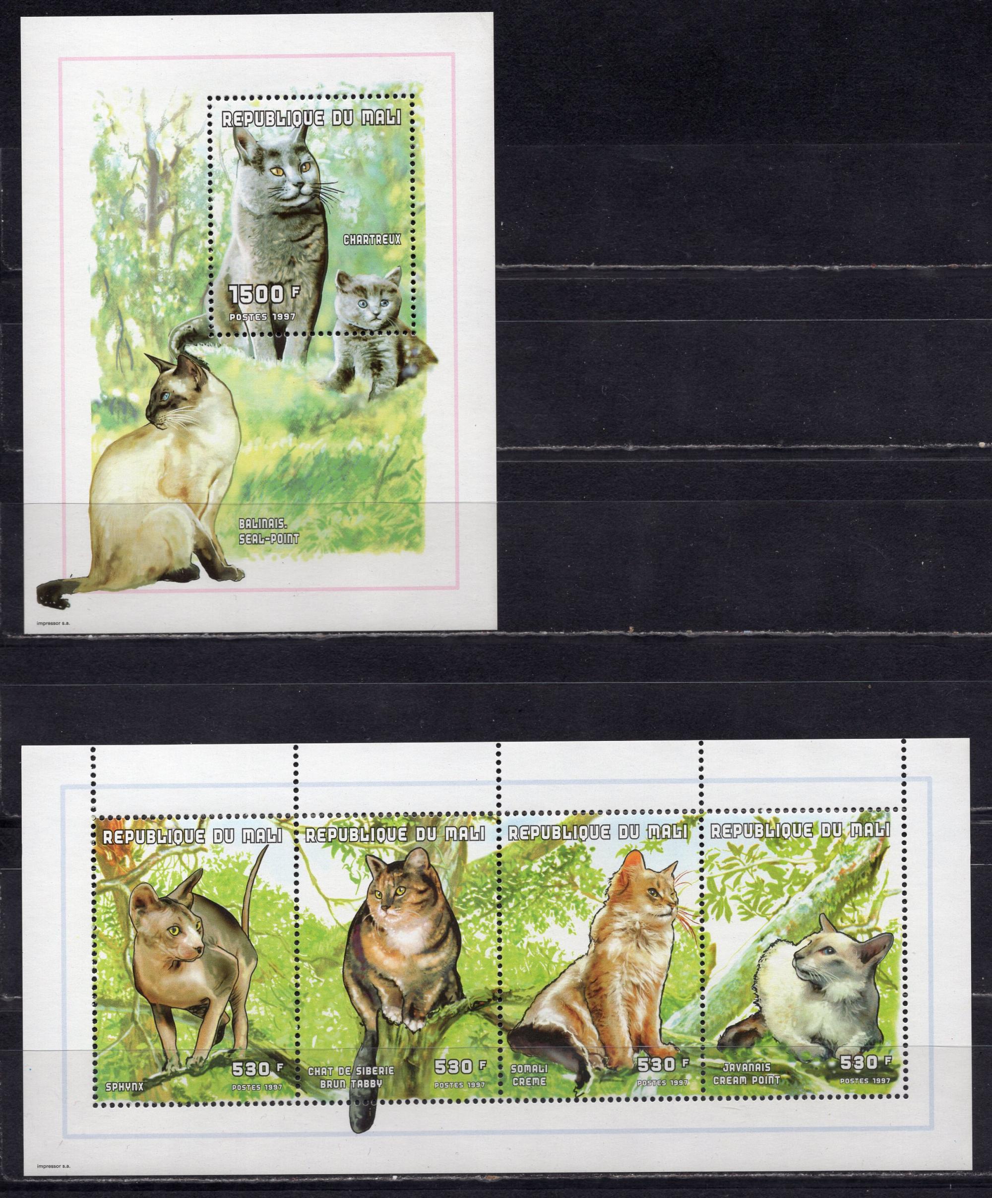 Почтовые марки. Мали, 1998 г. Кошки. №1991-1994. Бл.120. (17,0 е)