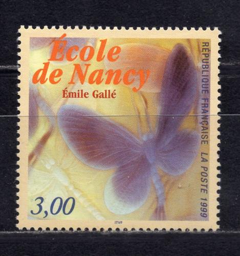 Почтовые марки. Франция, 1999 г. Фрагмент рисунка «Бабочка на стеклянной вазе» из школы Нанси дизайнера Эмиля Галле. №3388