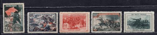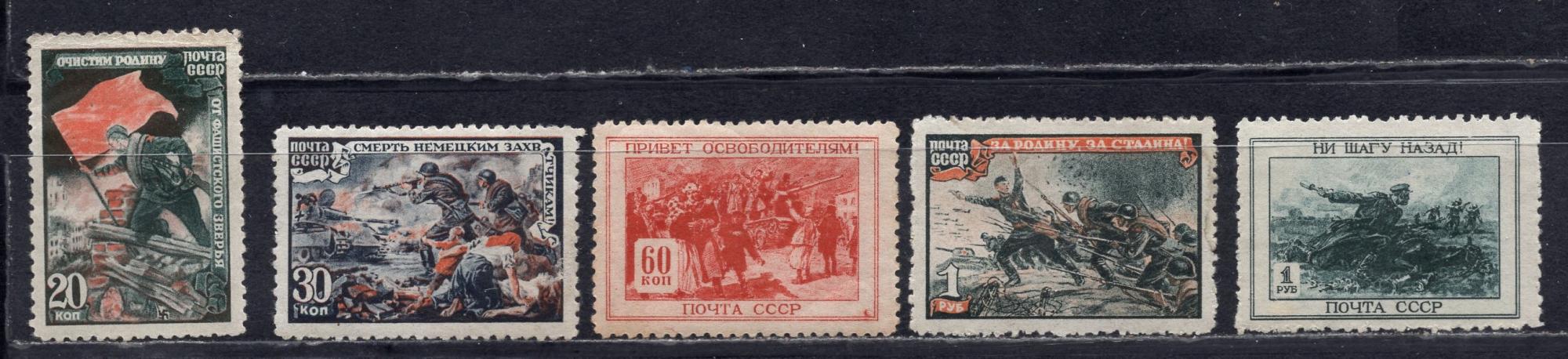 Почтовые марки. СССР, 1945 г. Война (5 из 6). №966-971. (См.сост.)