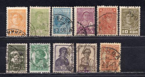 Почтовые марки. СССР, 1929 г. Стандарт. №314-319, 320, 322-325, 327.