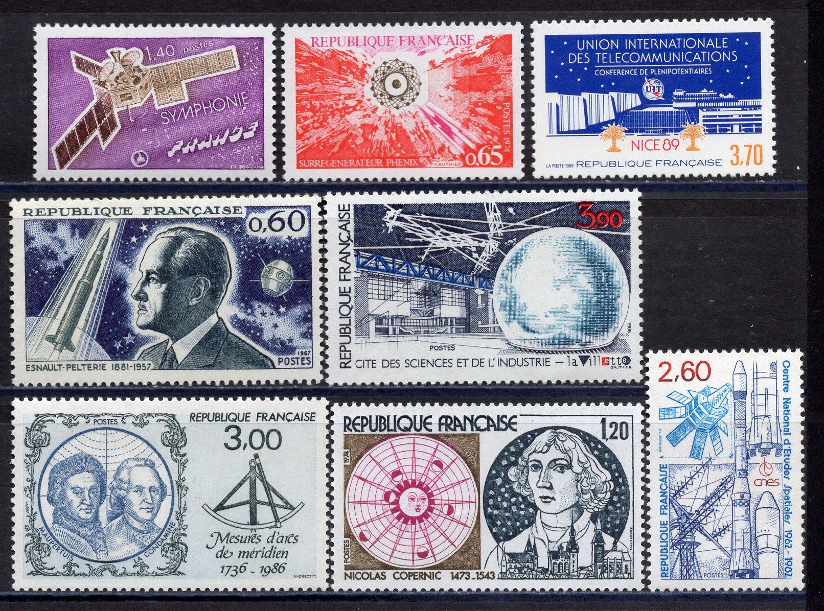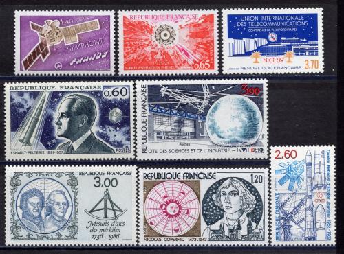 Почтовые марки. Франция. 1967-1989гг. Космос. Телеком. Астрономия. Сборный лот. №1705.1736 и т.д.