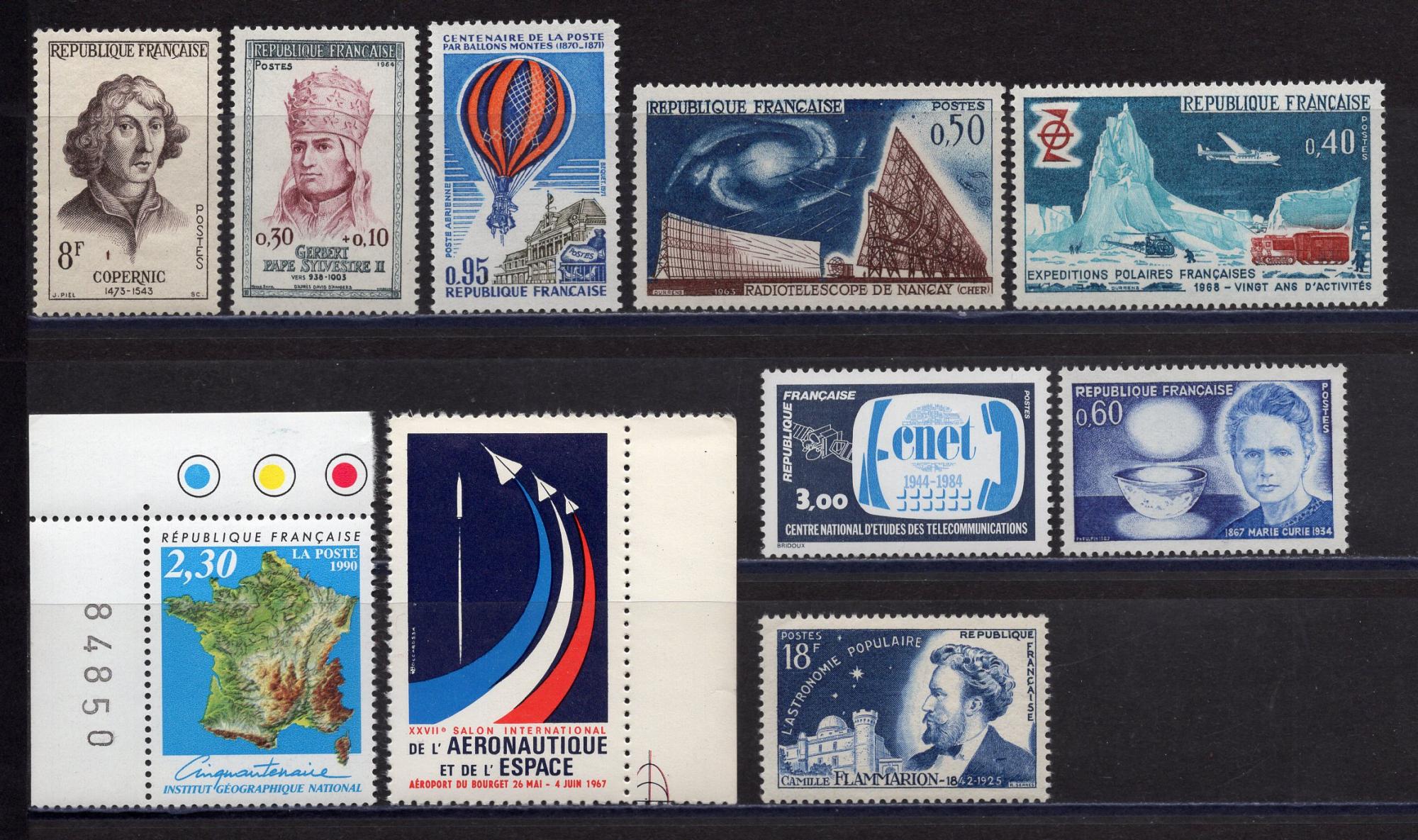 Почтовые марки. Франция. 1956-1990гг. Космос. Коперник. №1085.1167 и т.д. Сборная.