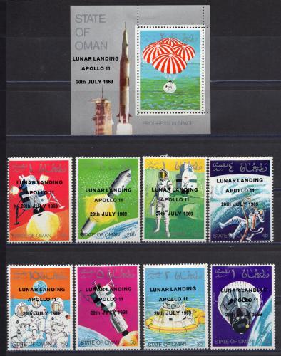 Почтовые марки. Оман. 1969г. Космос. Астронавты. Надпечатка. №66-73, Комплект. (кат. Weebau).