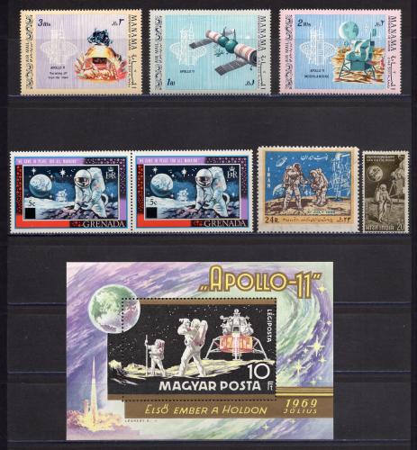 Почтовые марки. Венгрия, Гренада, Индия. 1969г. Космос. Аполлон-11. Сборный лот.