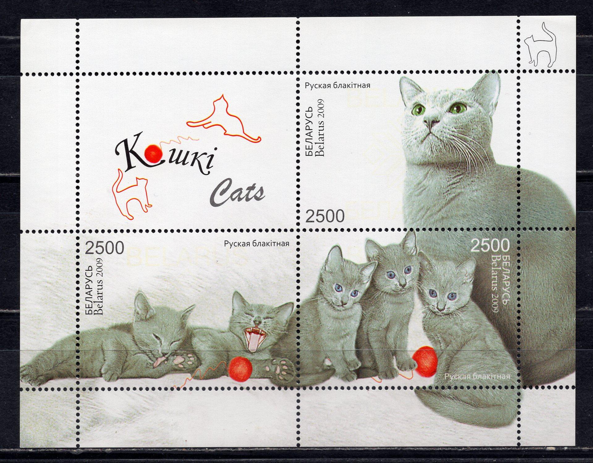 Почтовые марки. Беларусь, 2000 г. Кошки. Русская голубая. Бл. 69
