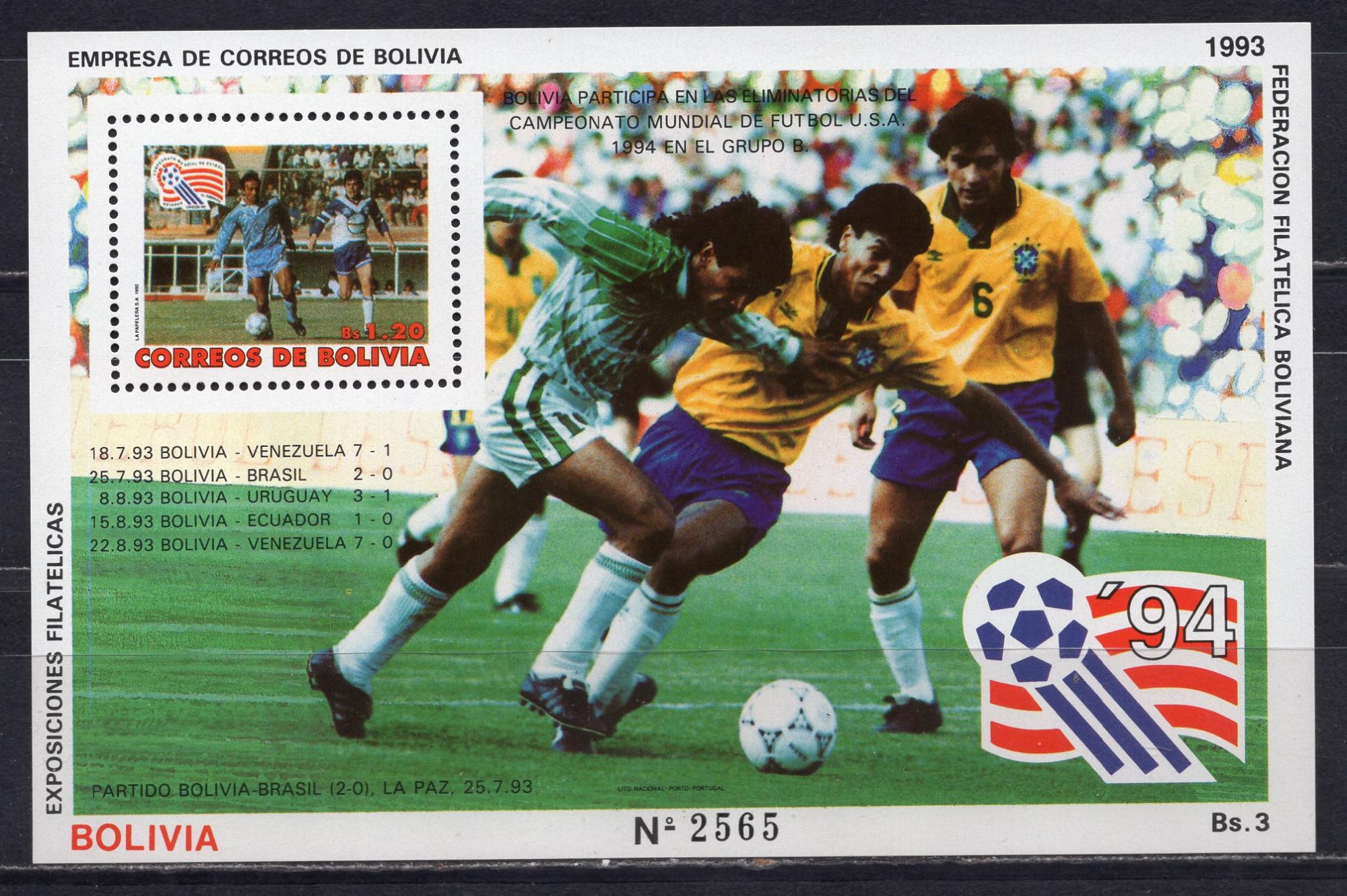 Почтовые марки. Боливия, 1994 г. Неофициальный выпуск федерации филателии. Футбол.