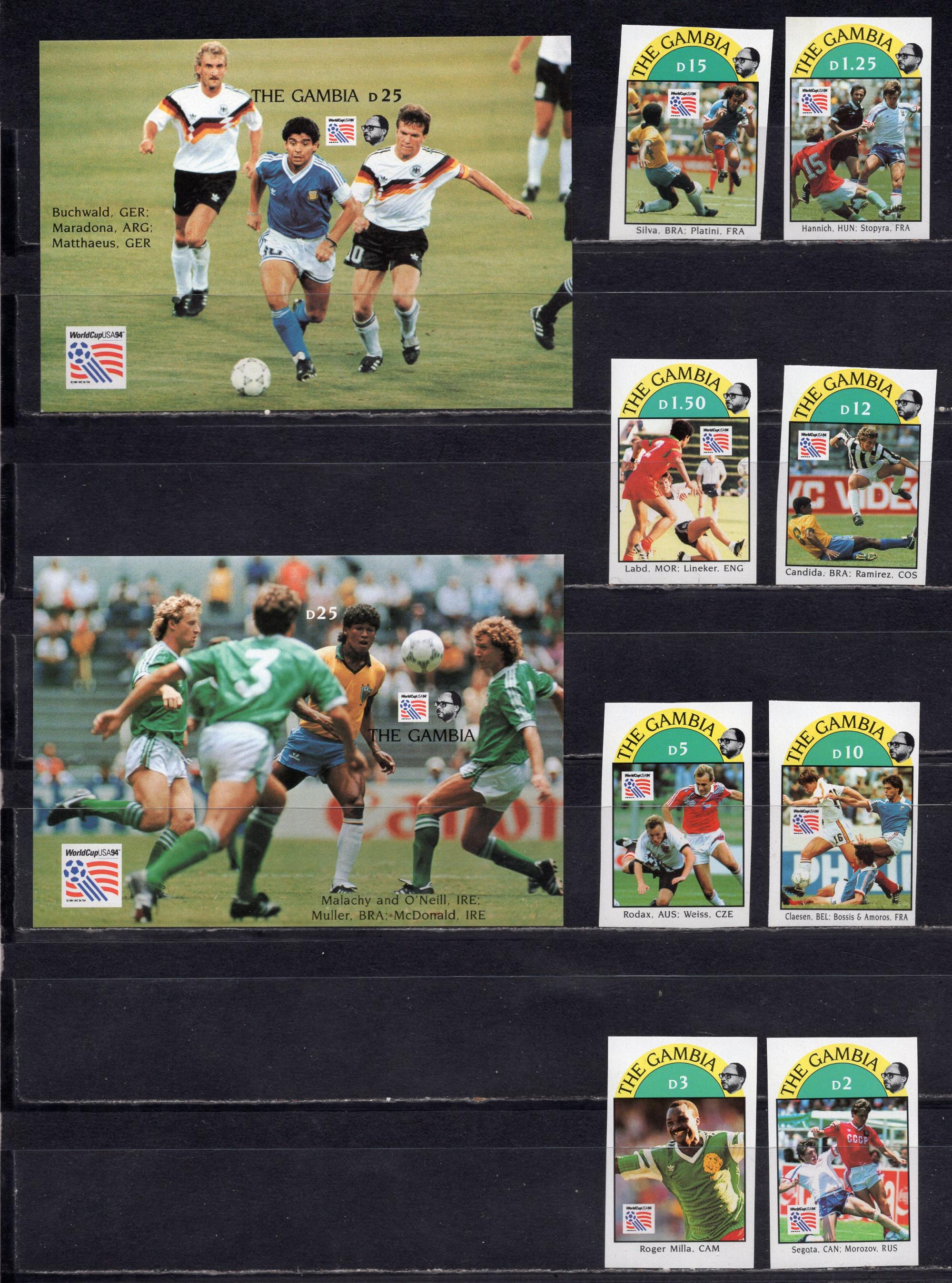 Почтовые марки. Гамбия, 1993 г. Футбол. №1769-1776. Бл.211-212.