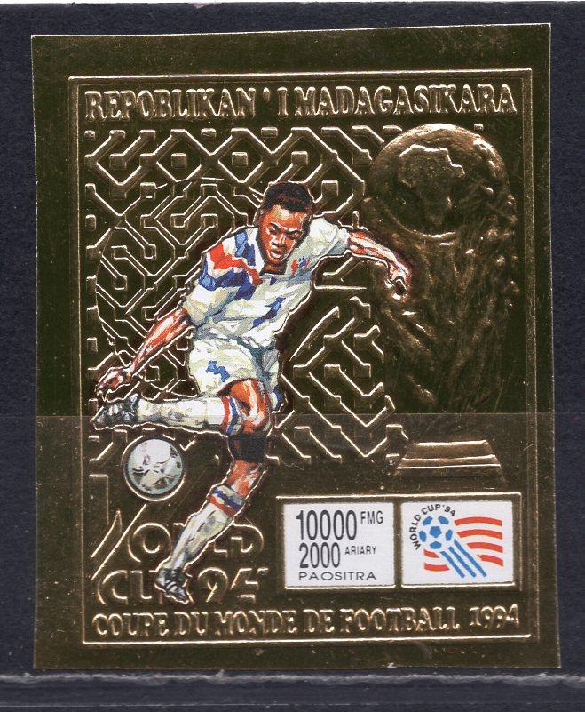 Почтовые марки. Мадагаскар, 1994г. Футбол. №1683В. Фольга. Золото. Безз