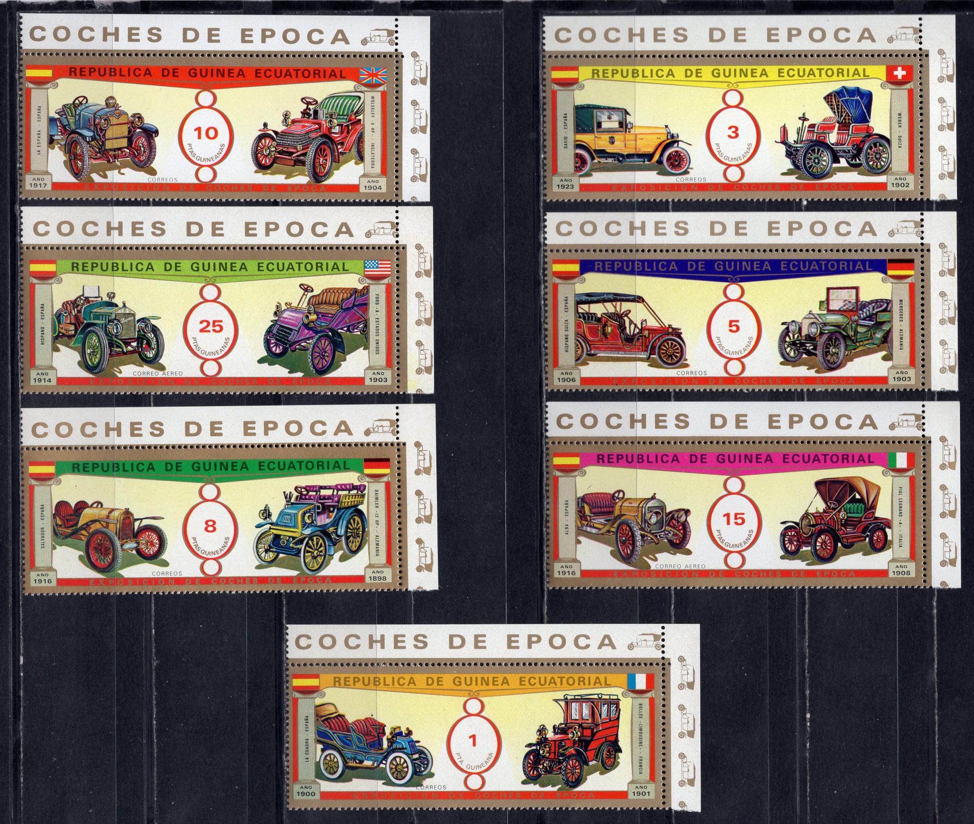 Почтовые марки. Экв. Гвинея, 1976г. Авто-ветераны. №877-883.
