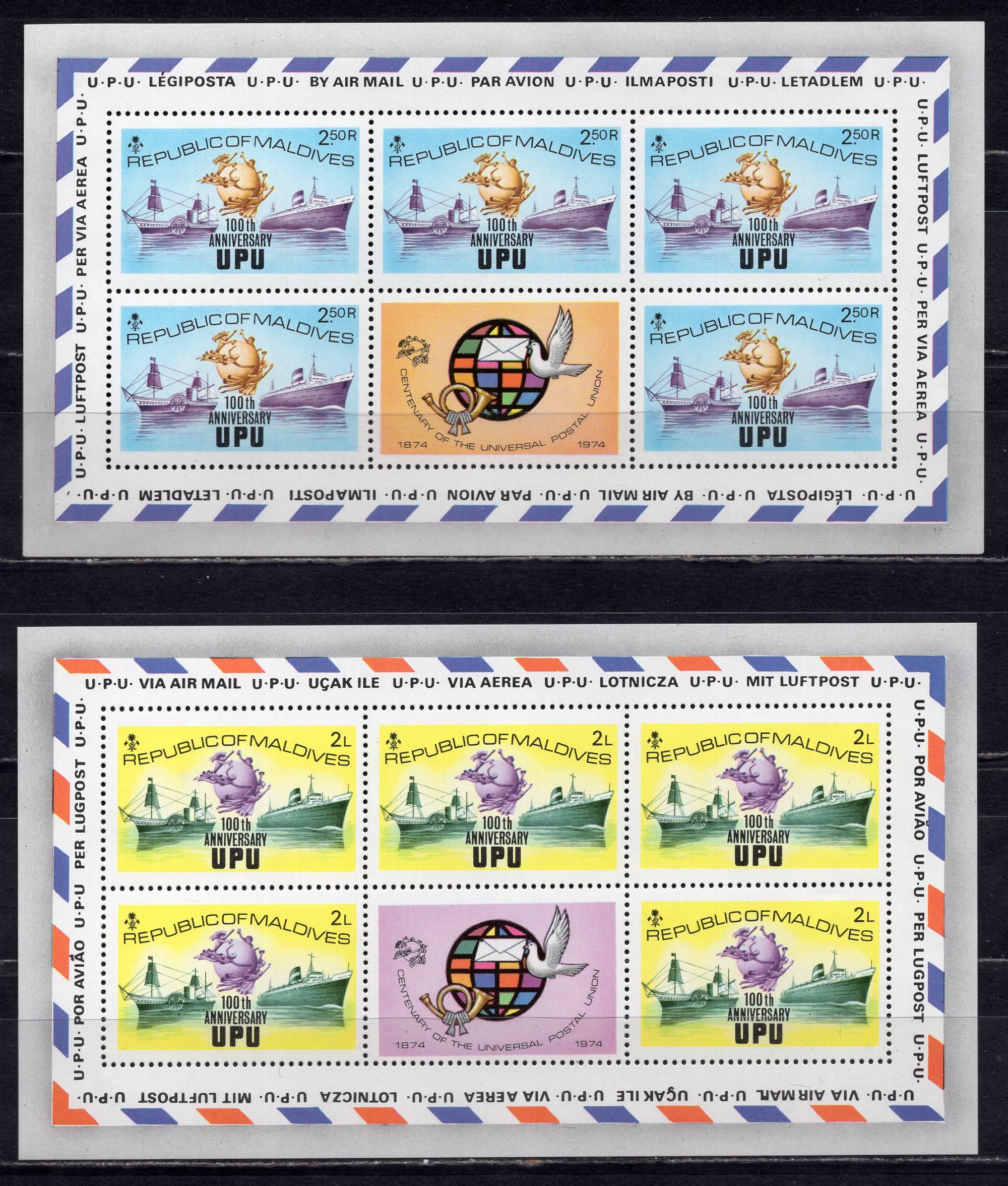 Почтовые марки. Мальдивы, 1974г. №515, 518. UPU. ВПС. Корабли. МЛ