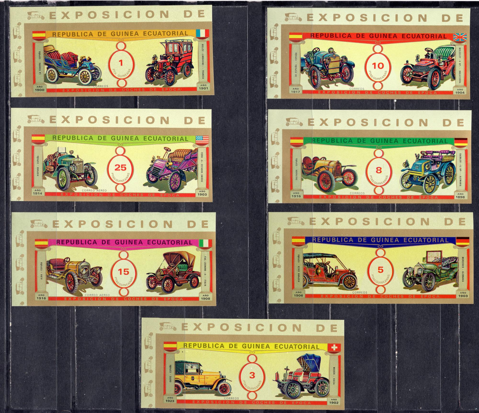 Почтовые марки. Экв. Гвинея, 1976г. Авто-ветераны. №877-883. Безз.
