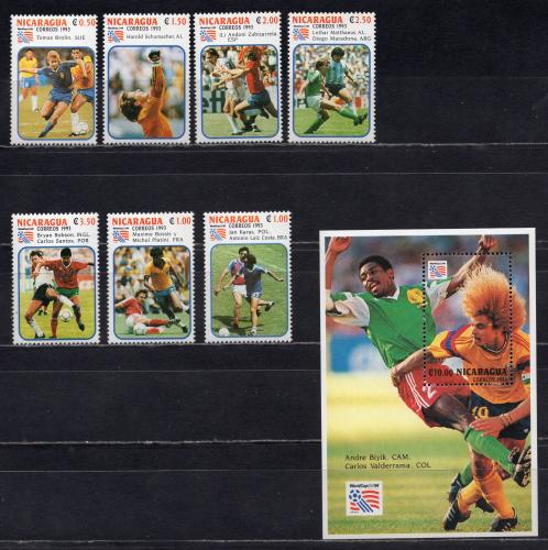 Почтовые марки. Никарагуа, 1994 г. Футбол. №3228-3234. Бл. 207.