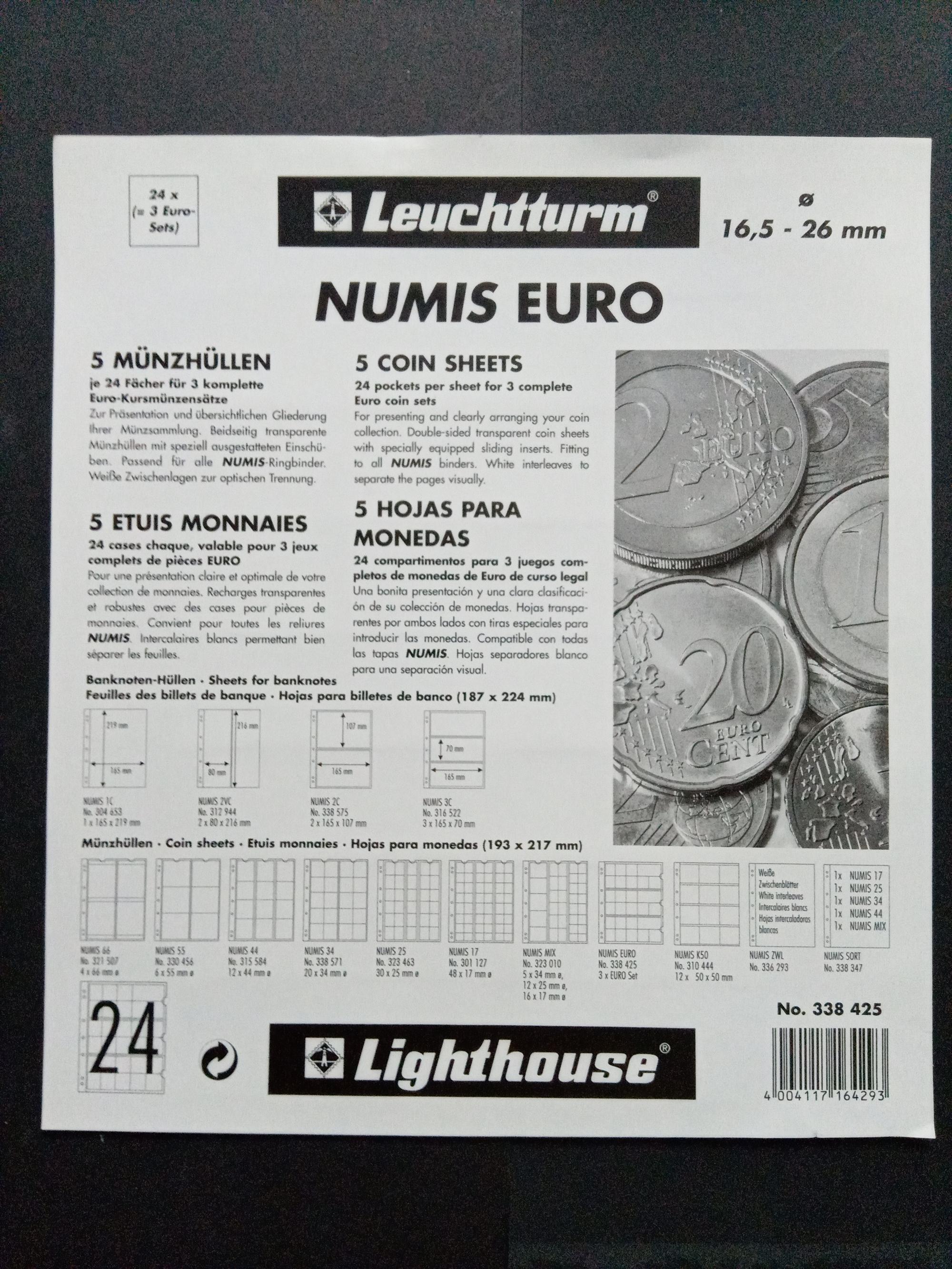 Лист для монет NUMIS, EURO-Set. Leuchtturm. 4 листа.