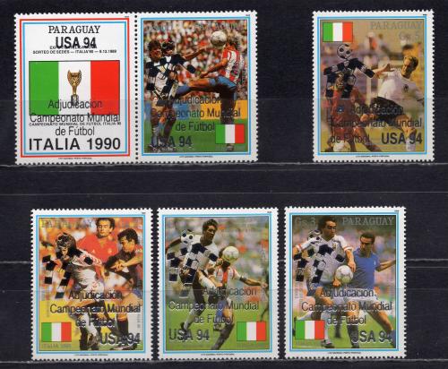 Почтовые марки. Парагвай, 1991 г. Футбол. ЧМ. Надпечатка. №4522-4526.