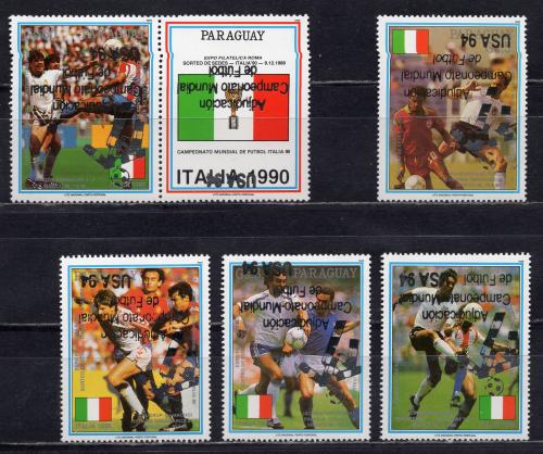 Почтовые марки. Парагвай, 1991 г. Футбол. ЧМ. №4522-4526К. Надпечатка. ПЕРЕВ.!