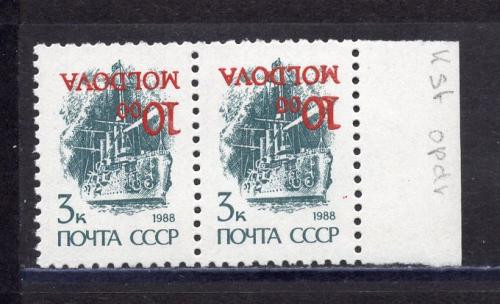 Почтовые марки. Молдова. 1992г. Надпечатка на Стандарте. ПЕРЕВЕРТКА. №25bК. Сцепка.