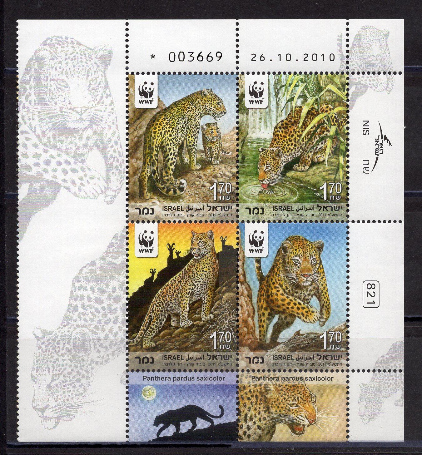 Почтовые марки. Израиль. 2011г. Персидский Леопард. WWF. №2189-2192.