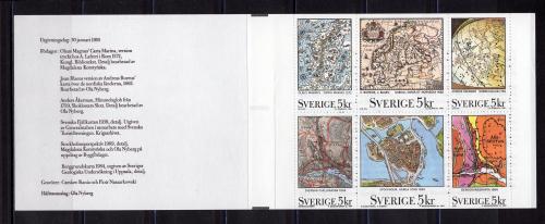 Почтовые марки. Швеция. 1991г. Древние карты. №1655-1660. Буклет.