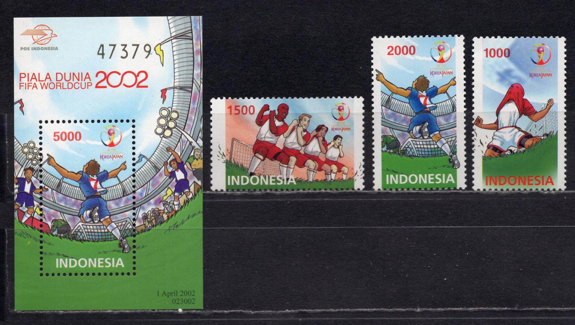 Почтовые марки. Индонезия, 2002 г. Футбол. №2167-2169. Бл. 174