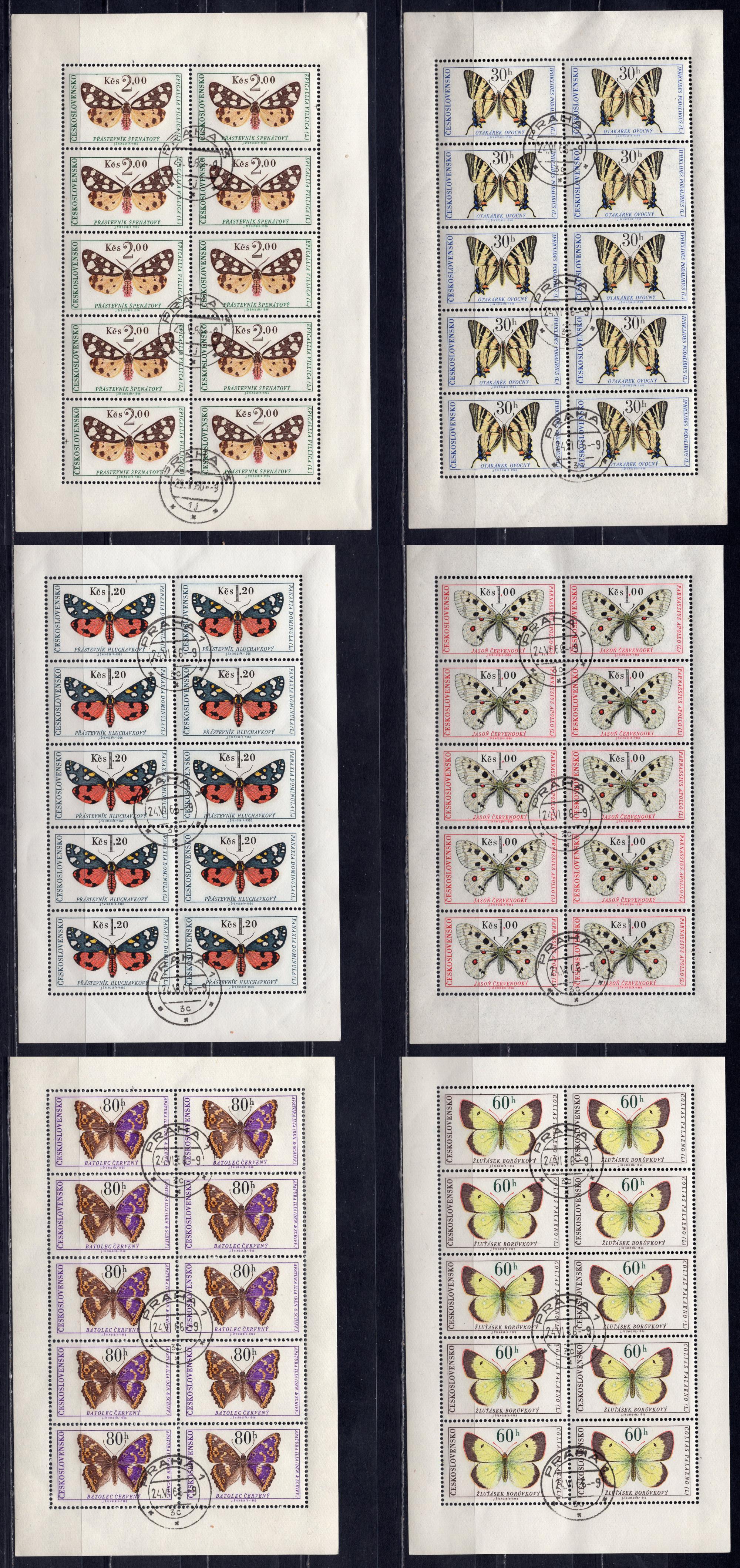 Почтовые марки. ЧССР, 1966 г. Бабочки. Комплект. №1620-1625. МЛ (6). (120,0 е)