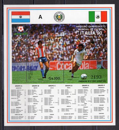Почтовые марки. Парагвай. 1987г. Футбол. ЧМ. Блок №438.