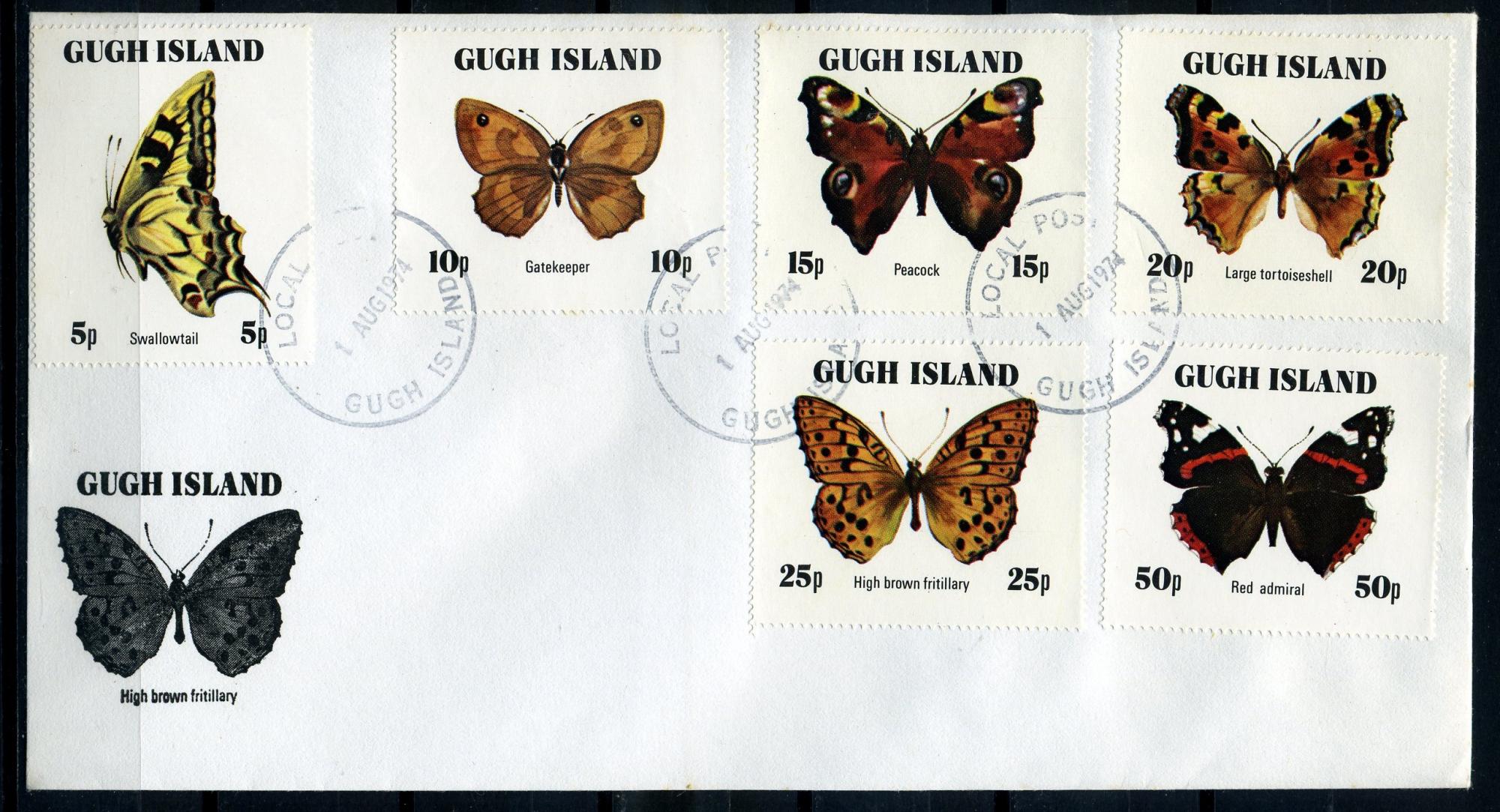 Конверт с марками и СГ. Остров Гуг 1974 г. Бабочки. КЗ.