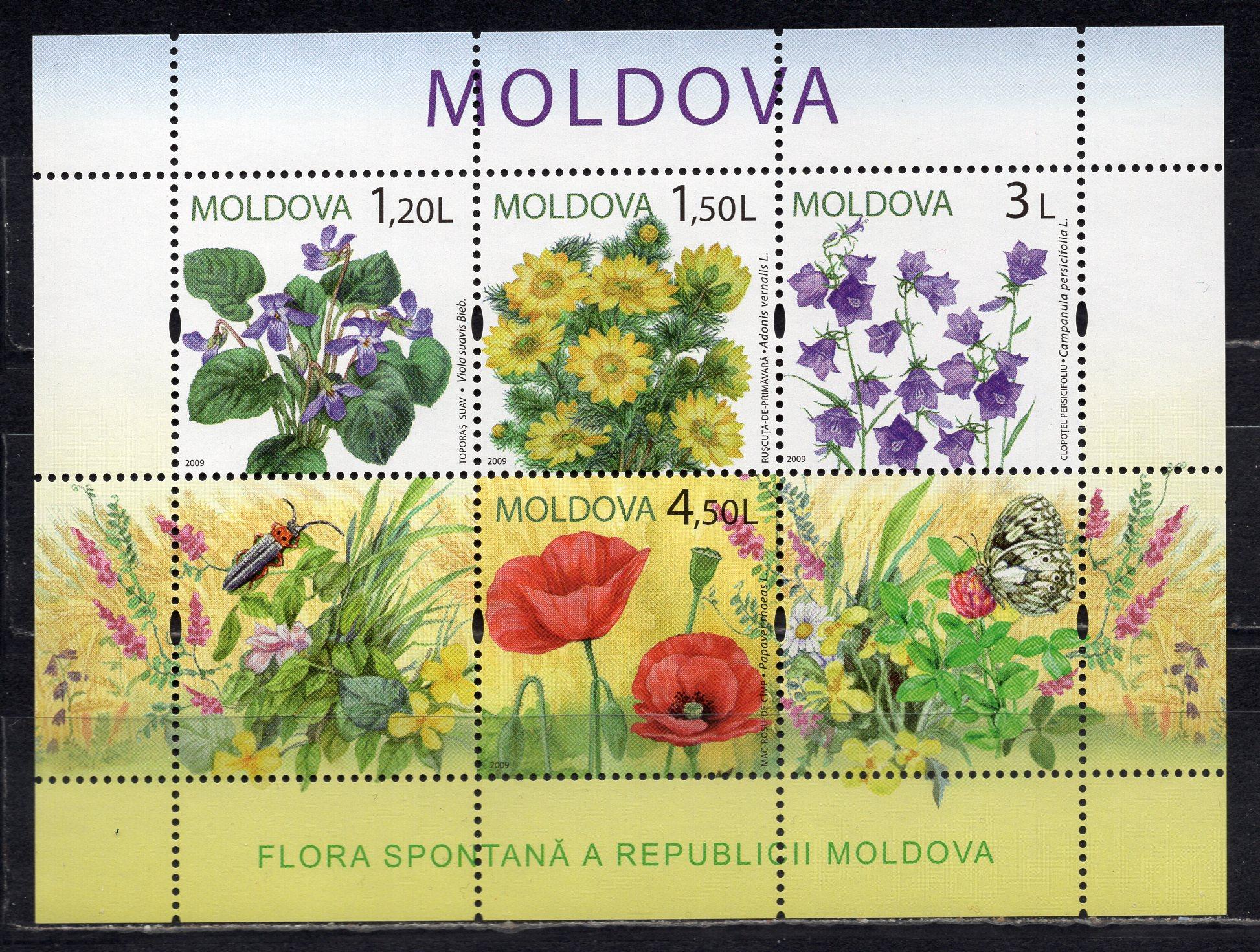 Почтовые марки. Молдова, 2009 г. Флора. Цветы. Бл. 47.
