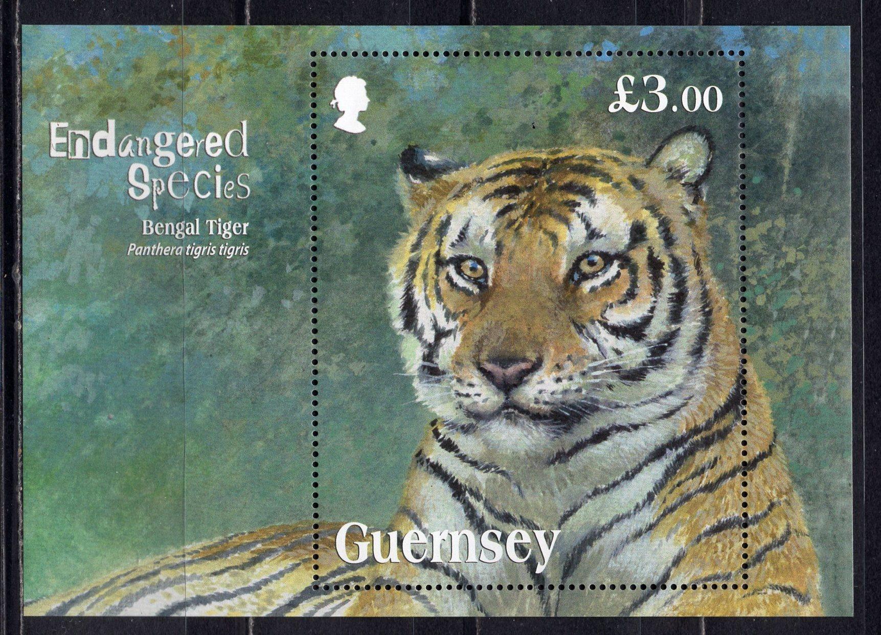 Почтовые марки. Гернси, 2012 г. Бенгальский тигр. Бл. 58.