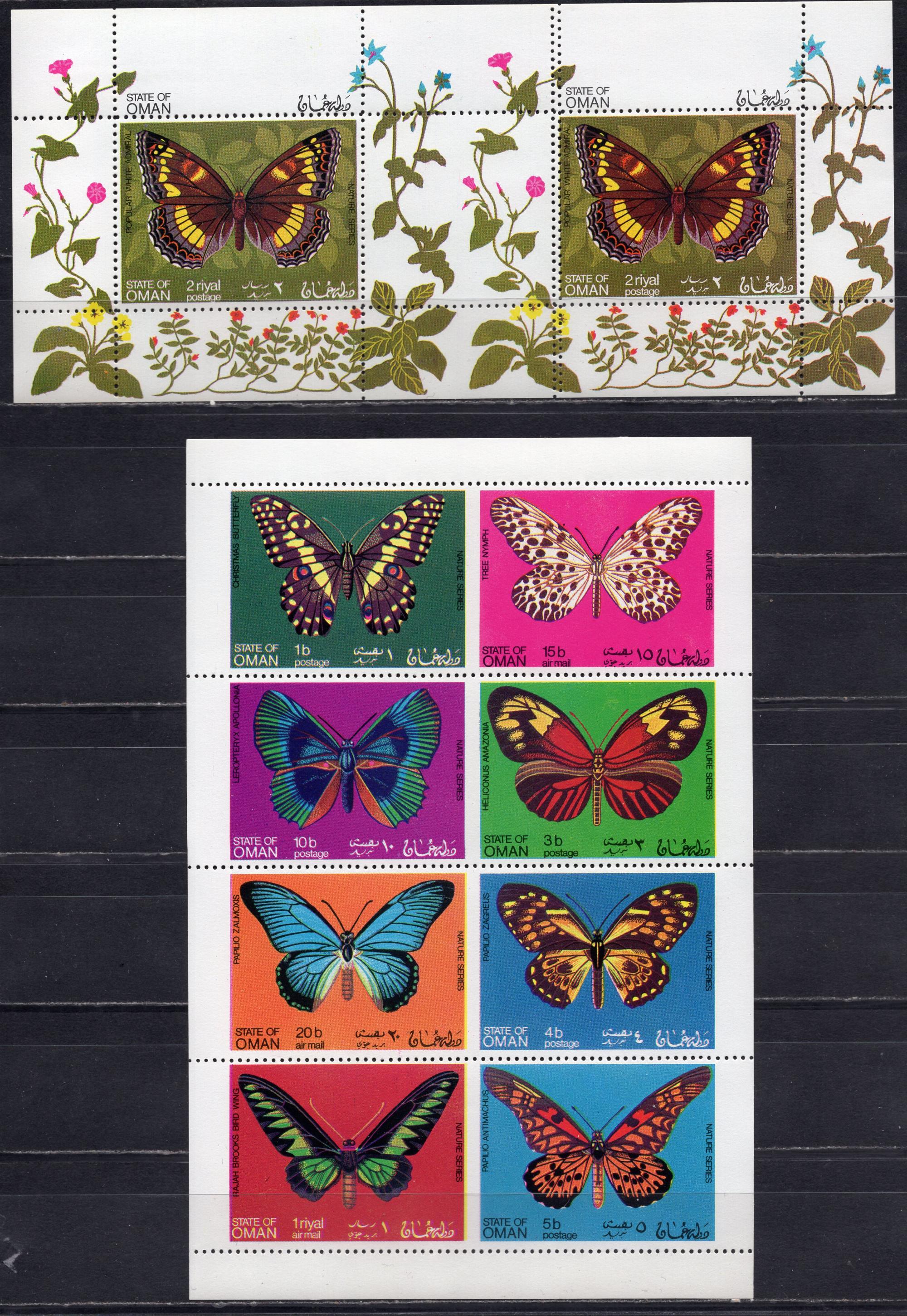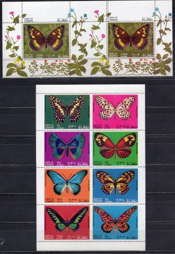 Почтовые марки. Оман, 1969 г. Бабочки. Пропуск ПЕРФОРАЦИИ.