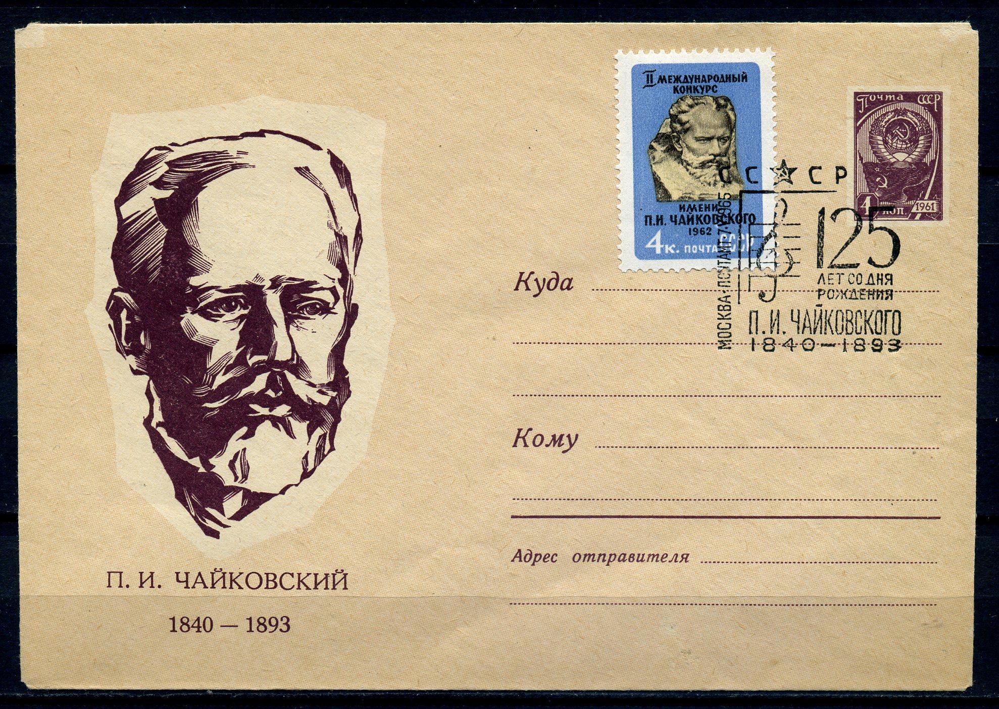 ХМК с маркой и СГ. СССР 1965 г. 125 лет со ДР П.И. Чайковского. КО.