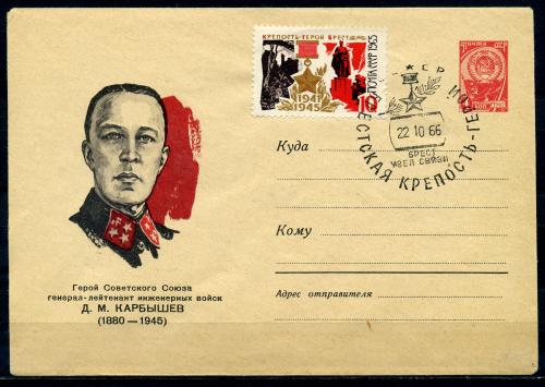 ХМК с маркой и СГ. СССР 1965 г. Д.М. Карбышев. СГ- Брестская крепость-герой. 1966г. КО.