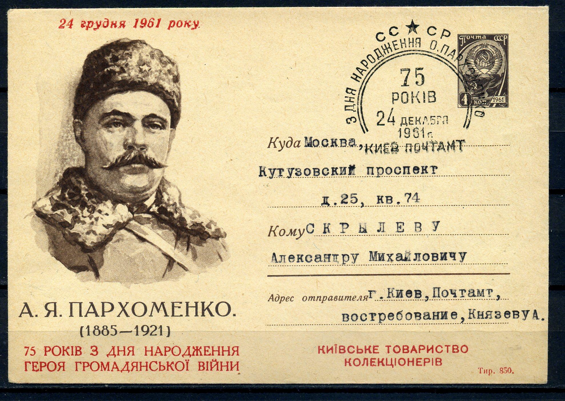 ХМК со СГ, подписан. СССР 1961 г. 75 лет со ДР. А.Я.Пархоменко. КО.