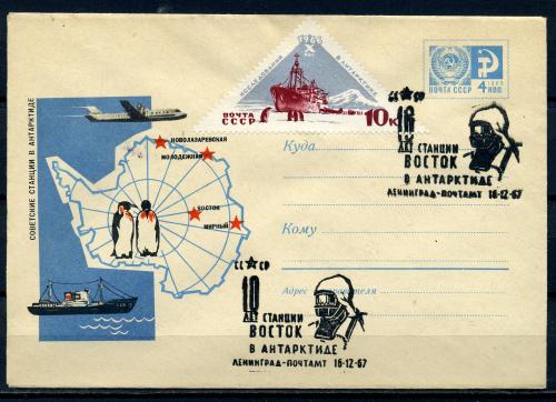 ХМК с маркой и СГ. СССР 1967 г. Советские станции в Антарктиде. КО.