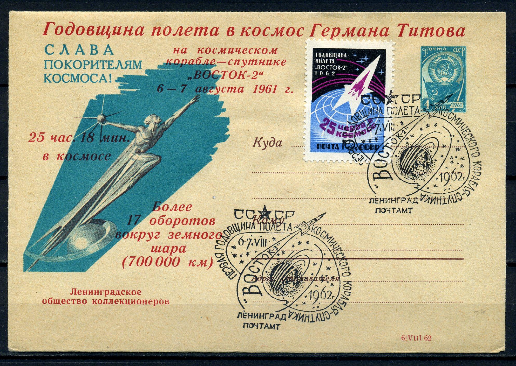 ХМК с маркой и СГ. СССР 1962 г. Годовщина полета Г. Титова в космос. КО.