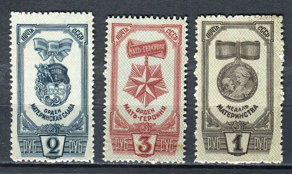 Почтовые марки. СССР, 1945 г. №1010-1012. Медали и ордена (Кат. Сол.: 300р.).